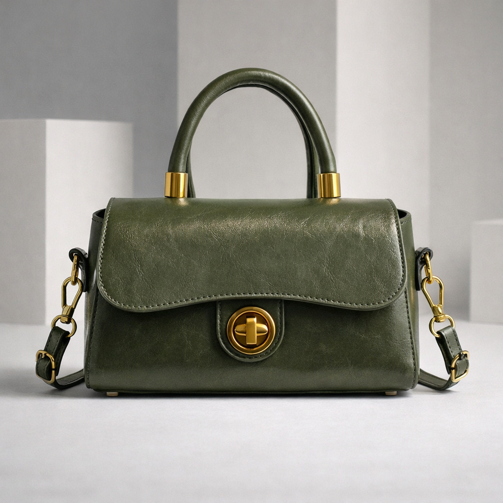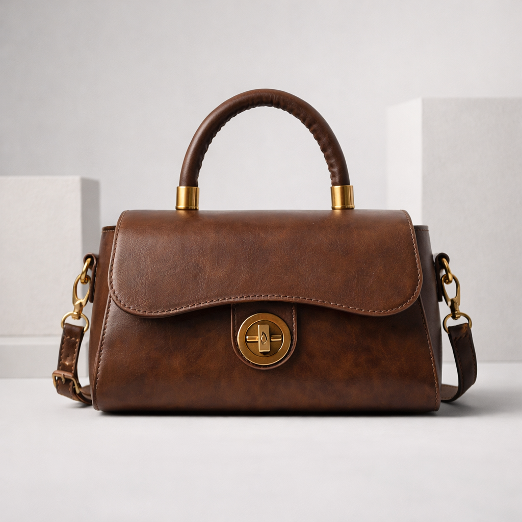 A structured mini top-handle handbag defined by clean lines, smooth leather panels, and precisely finished gold hardware that gives it a composed, refined presence. The compact silhouette is reinforced to hold its shape beautifully, creating a polished look that feels intentional rather than oversized. Designed to carry daily essentials with ease, it transitions effortlessly from daytime styling to evening wear as a subtle statement piece for women who prefer controlled elegance over excess.
