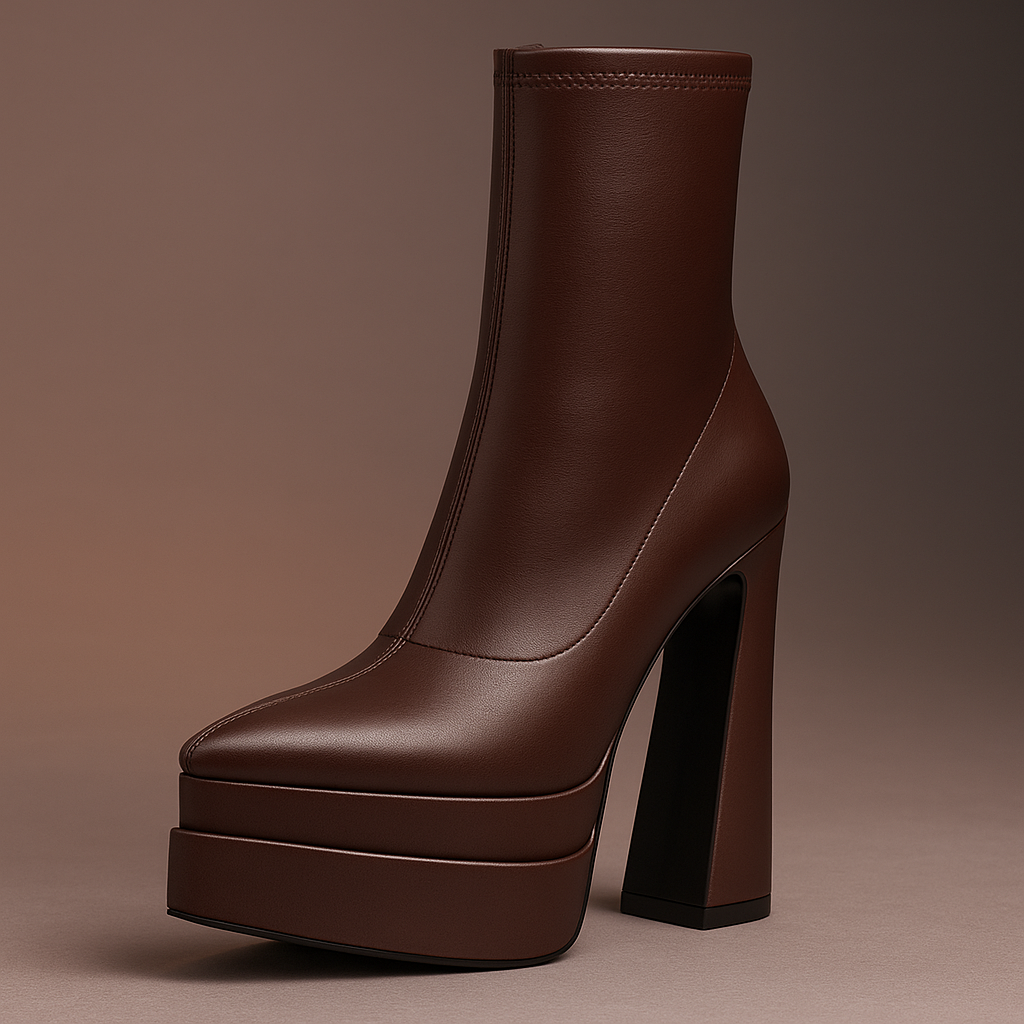 A sculpted high-rise platform crafted with clean architectural lines, shaped to bring unmistakable presence to any look. The pointed profile and fitted ankle create an elongated silhouette with refined balance and modern edge. Designed for evenings where confidence is the dress code.